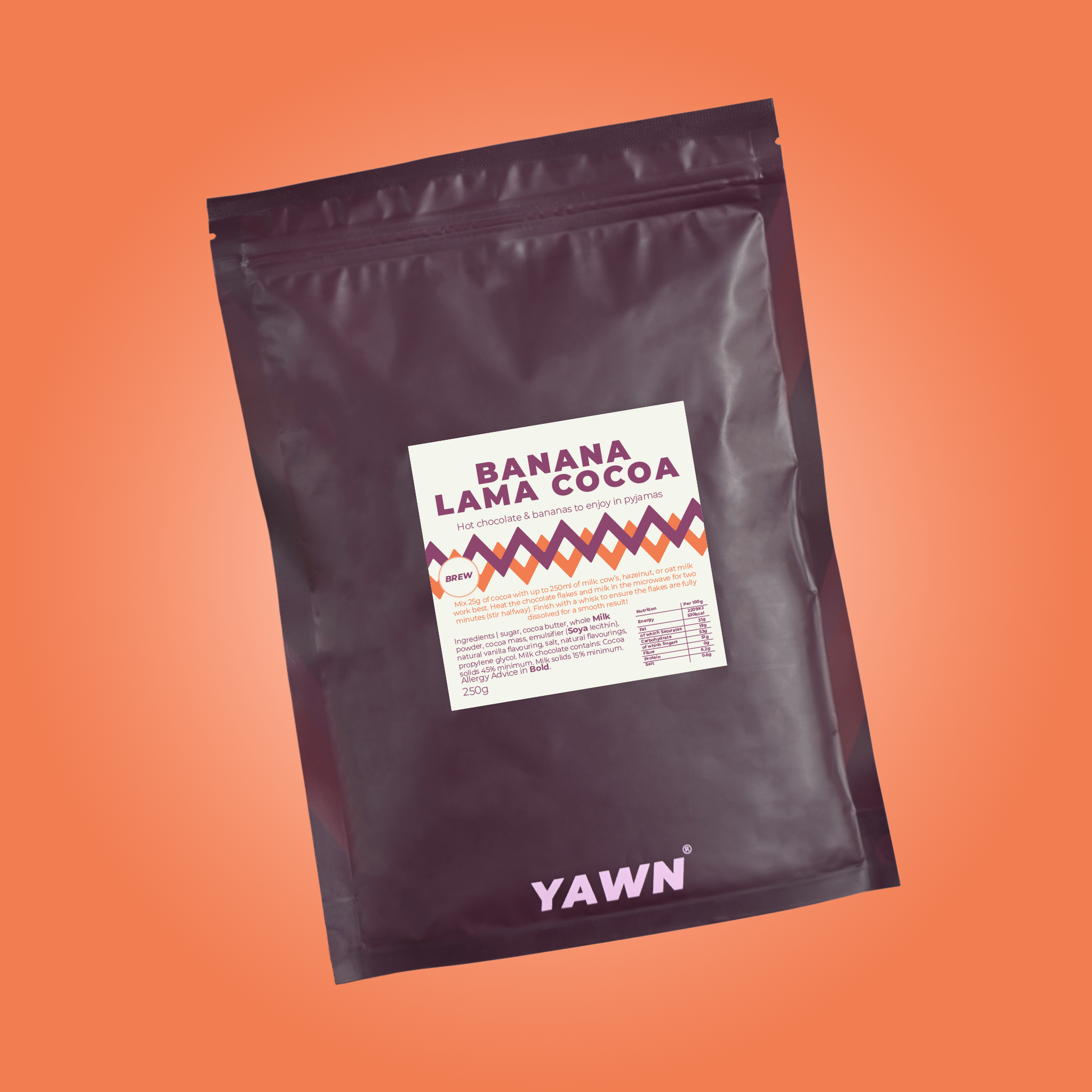 Banana Lama Milk - sugar, cocoa butter, whole Milk powder, cocoa mass, emulsifier (Soya lecithin), natural vanilla flavouring, salt, natural flavourings, propylene glycol. Milk chocolate contains: Cocoa solids 45% minimum. Milk solids 15% minimum.