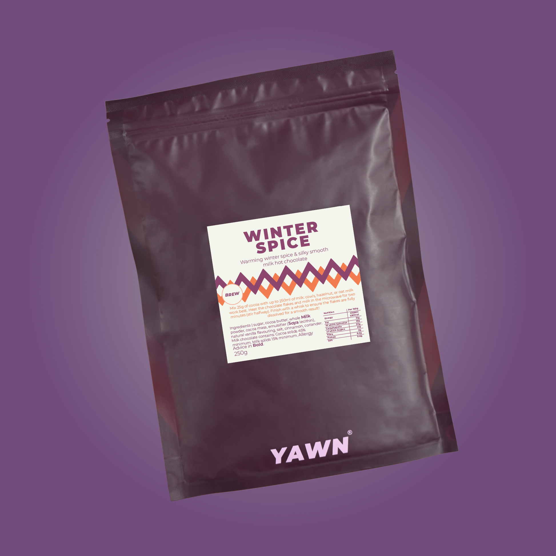 Winter Spice Dark - sugar, cocoa mass, cocoa butter, emulsifier (Soya lecithin), natural vanilla flavouring, salt, cinnamon, coriander. Dark chocolate contains: cocoa solids 65% minimum. May contain milk.