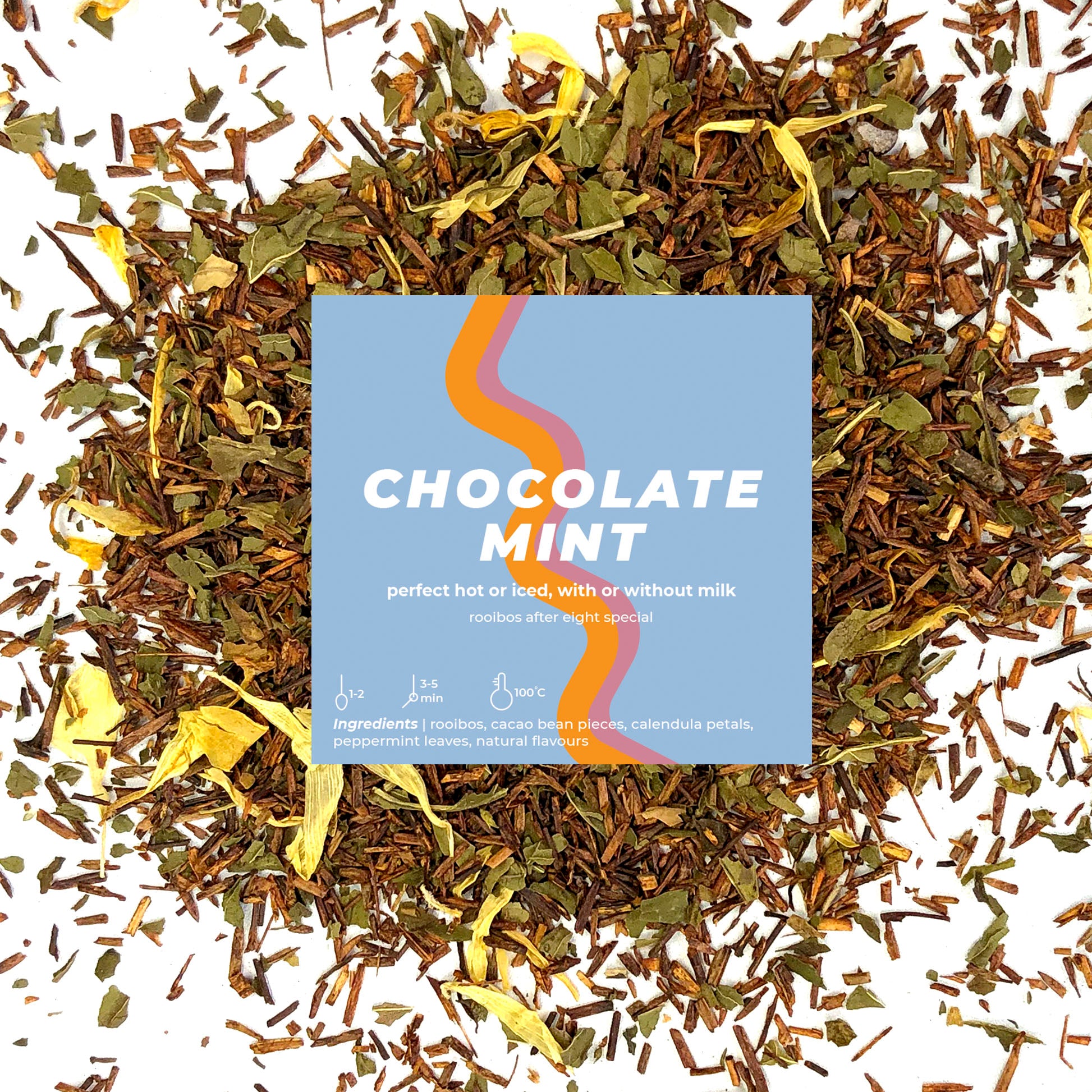 A rooibos blend with a perfect chocolate and mint combination. Brew this after eight special as a lattea with hot frothed milk.